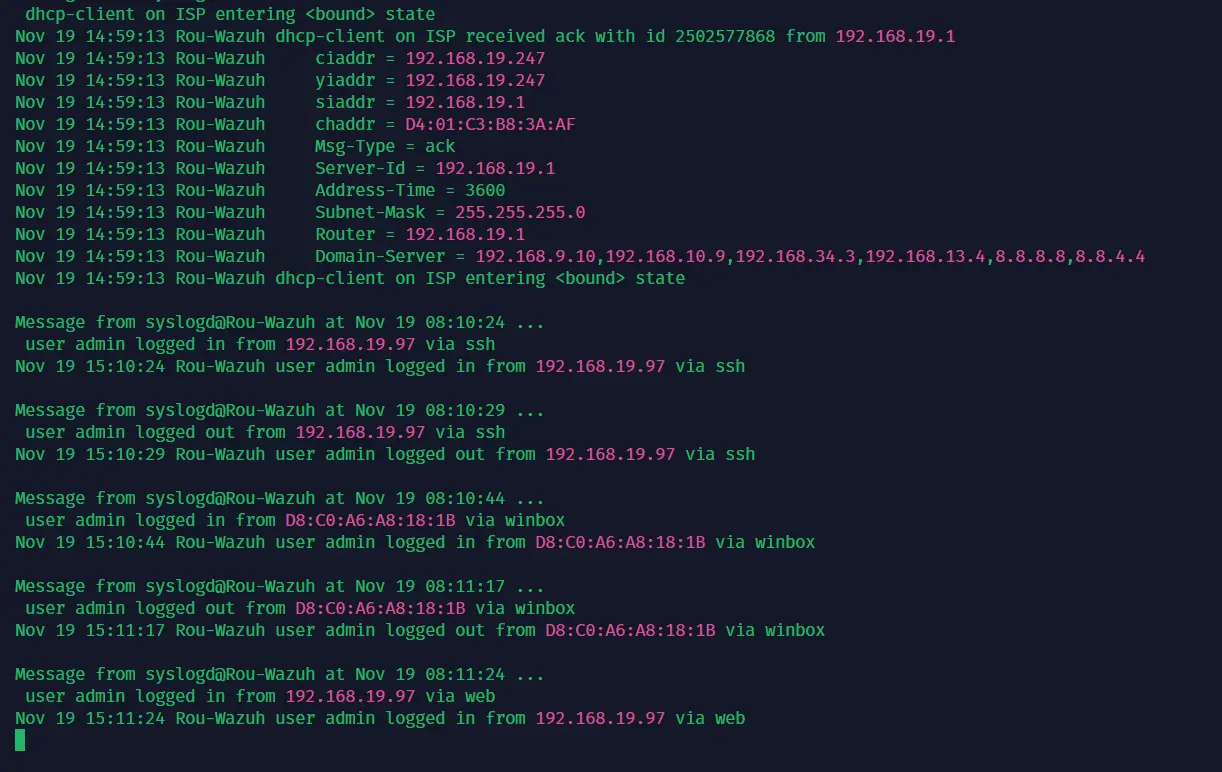 Dokumentasi Monitoring Router MikroTik dengan Wazuh SIEM/XDR